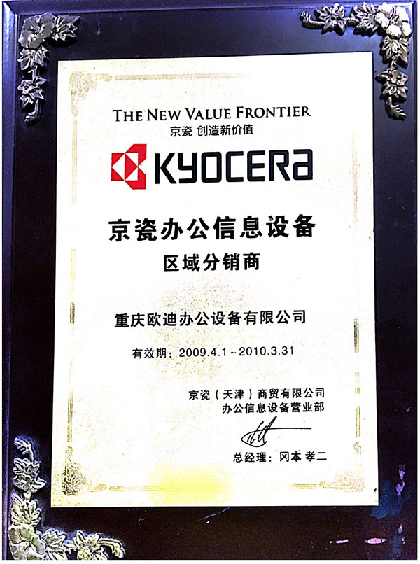 重庆欧迪办公设备有限公司专业致力于现代办公设备的租赁服务十年,是京瓷数码复/打印机重庆市核心代理商、京瓷办公信息设备认证店。