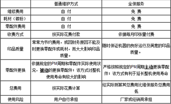 3、耗材费用、零配件费用和维修服务费用越来越高导致使用成本逐年增高;
