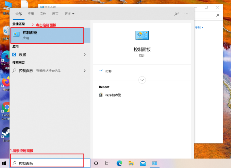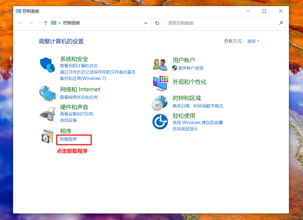 在控制面板界面,“程序和功能”,点击进入。