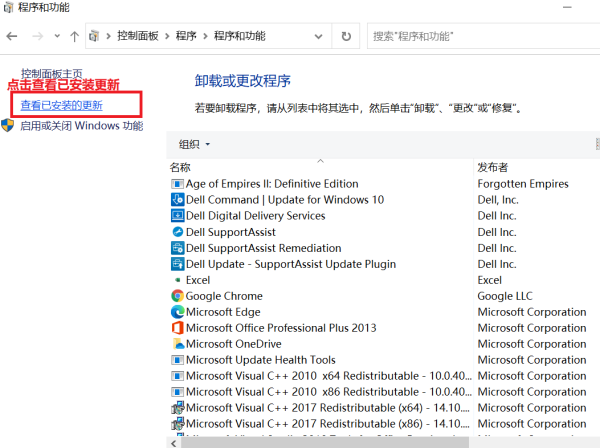 点击“查看已安装的更新”。